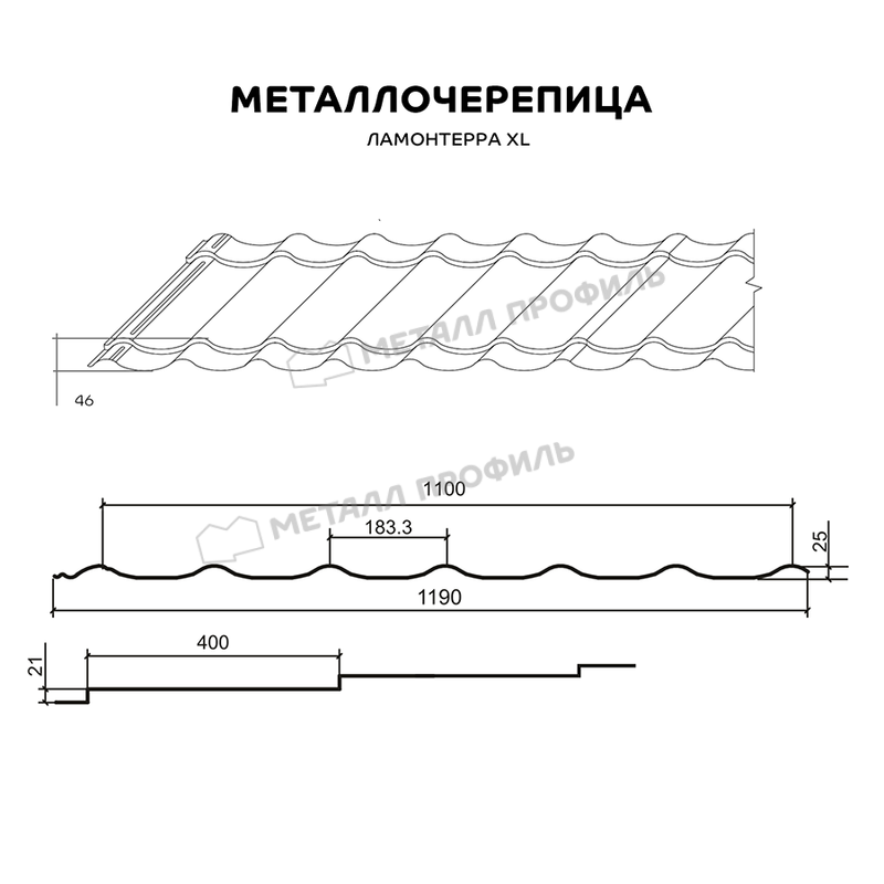 Металлочерепица Металл-Профиль Ламонтерра XL 0,45 Полиэстер RAL 8017 Коричневый шоколад