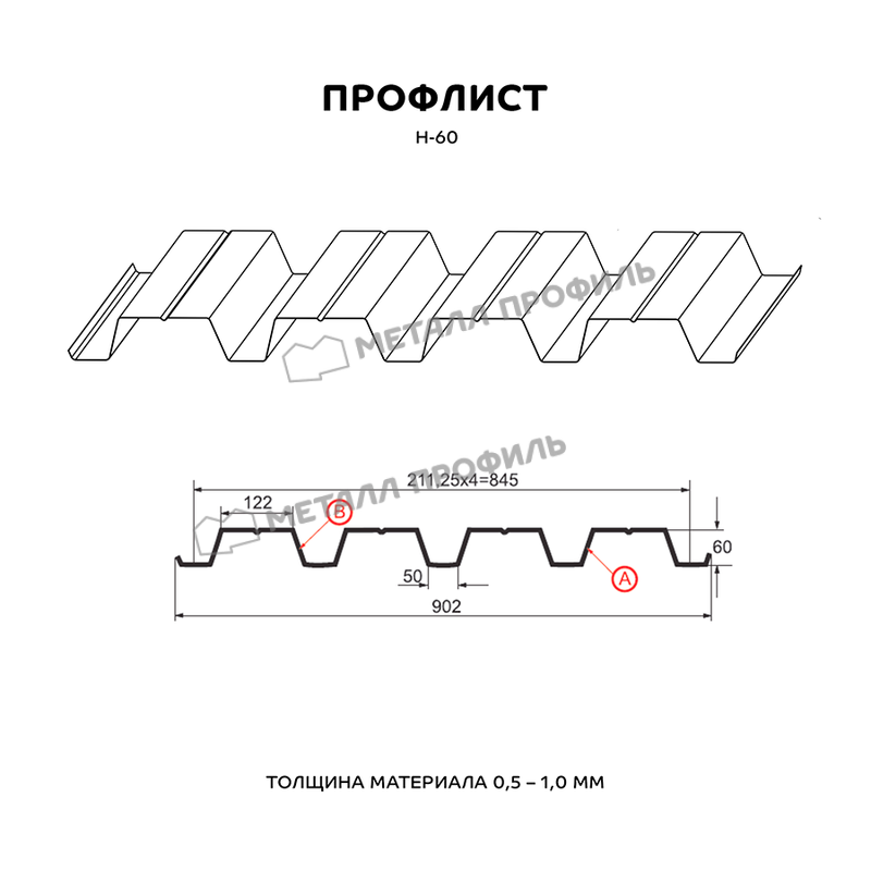 Профлист Металл-Профиль Н-60 NormanMP 0.5 мм RAL 8004 Коричневая медь - это качественный и надежный материал для строительства и отделки различных объектов. Он изготовлен из высококачественной стали толщиной 0.5 мм, что обеспечивает прочность и долговечность конструкции.