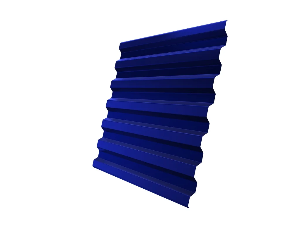 Профнастил ЮджинСтрой С21 с покрытием из полиэстера и цветом Ral 5002 ультрамариново-синий - отличный выбор для кровли и обшивки зданий. Этот материал обладает высокой прочностью и долговечностью, что обеспечивает надежную защиту от внешних воздействий.