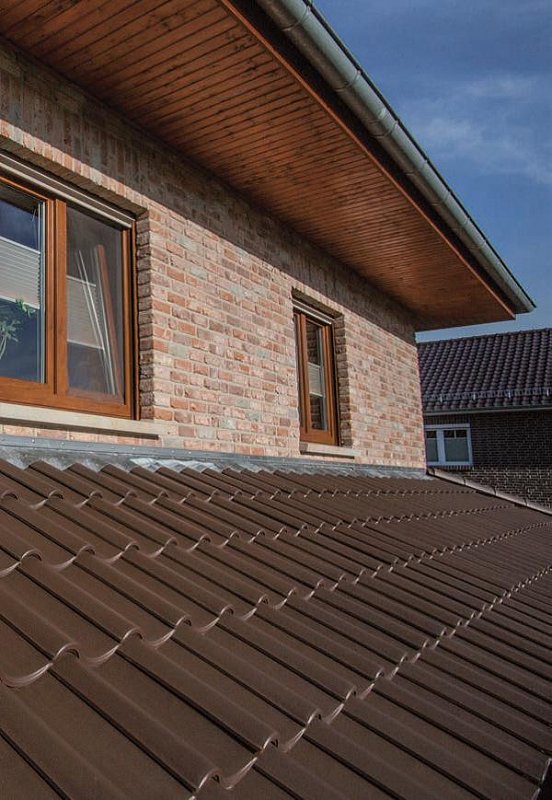 Орехово-коричневый цвет придает черепице элегантный и благородный вид, который идеально вписывается в любой архитектурный стиль. Кроме того, поверхность черепицы имеет специальное покрытие, которое защищает её от ультрафиолетовых лучей и сохраняет цвет на протяжении многих лет.