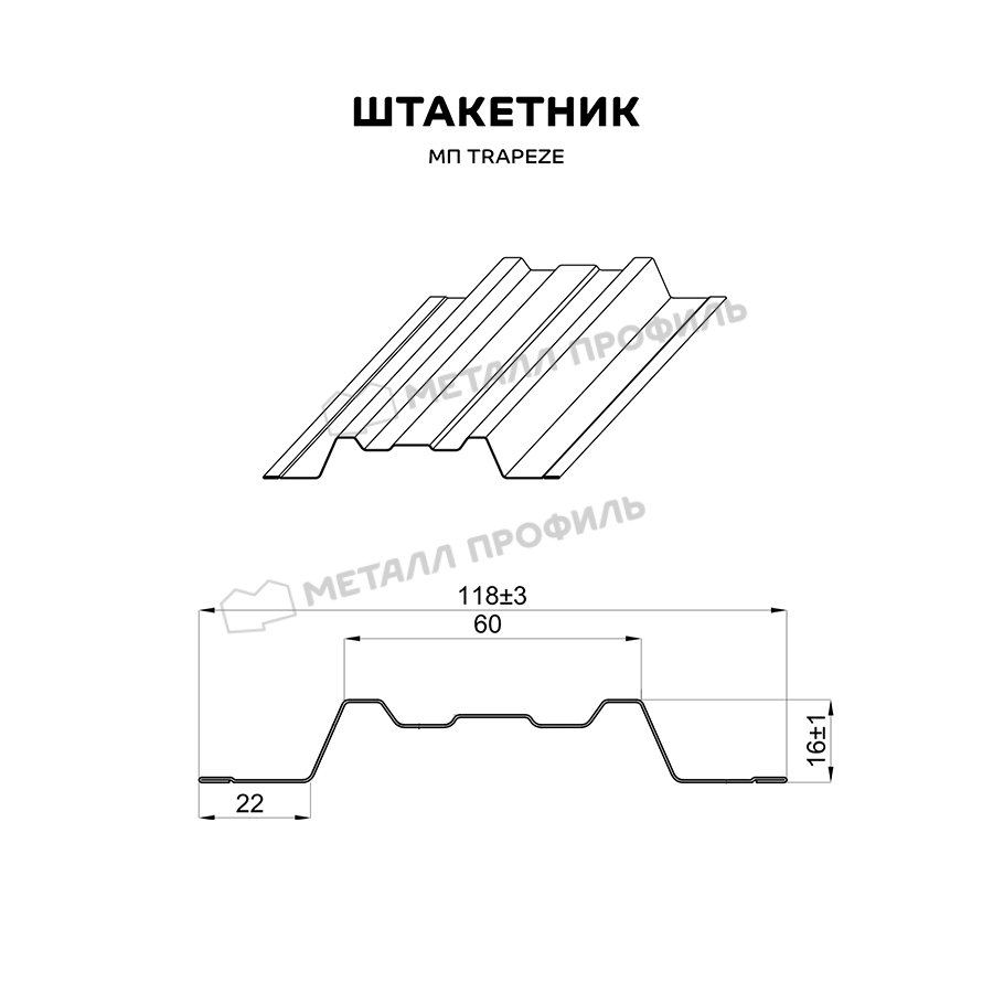 Штакетник Металл Профиль TRAPEZE-T 0,5 VALORI DarkGrey