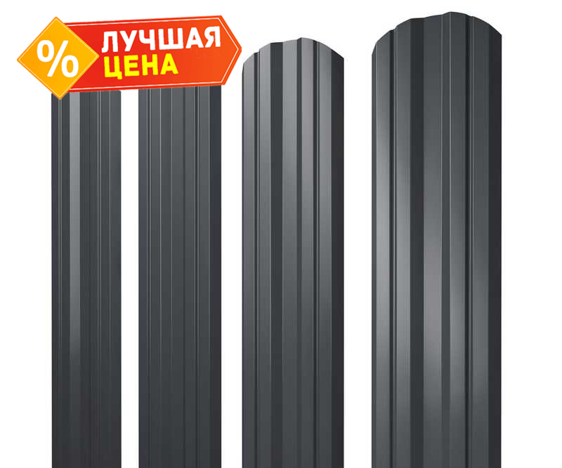 Штакетник Twin фигурный Grand Line 0,45 Drap ST RAL7024 Мокрый Асфальт
