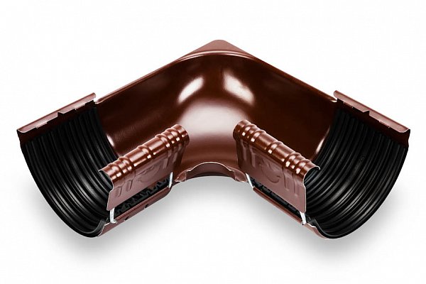 Темно-коричневый цвет внутреннего угла гармонично сочетается с различными фасадами зданий, придавая водосточной системе завершенный и эстетичный вид. Это особенно важно для частных домов и коттеджей, где внешний вид играет значительную роль.
